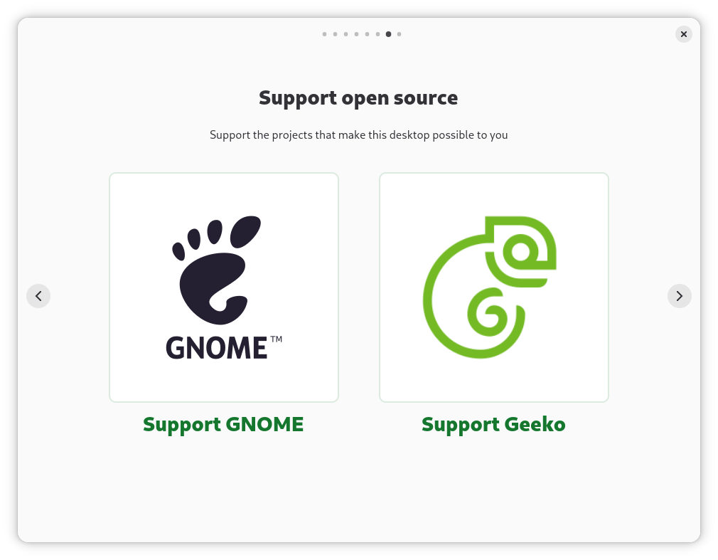 - A new donations page. In openSUSE we remove the popup from GNOME